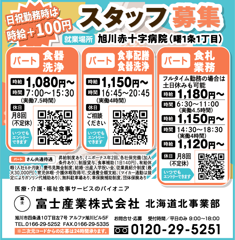 富士産業株式会社北海道北事業部 ホーム 雇用形態で探す(パート・アルバイト) 富士産業株式会社北海道北事業部 職種 食器洗浄パート食事配膳・食器洗浄パート食札業務パート 交通費支給 車通勤可 制服・用具貸与 産前産後・育児・介護休暇 賄いあり 公開日:2025年11月11日 掲載期間:2025年11月18日まで 労働者募集に関する情報提供日時:2025年11月10日時点 キープ この求人への応募はこちら ご応募またはお問合せ先の表示 0120295251 ※お電話の際は「ライナージョブを見て」とお伝え下さい。