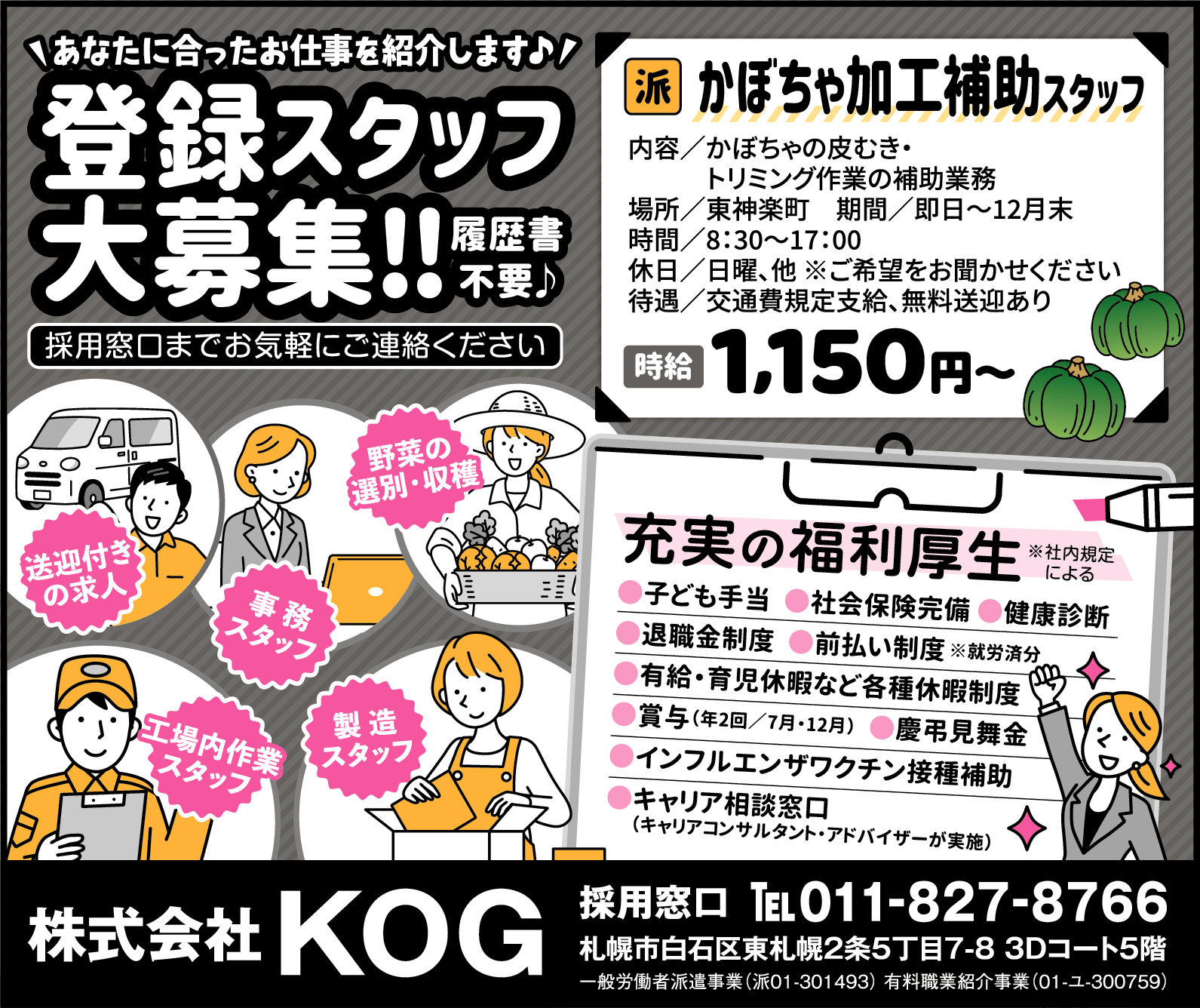 株式会社KOG ホーム 雇用形態で探す(人材派遣・紹介) 株式会社KOG 職種 かぼちゃ加工補助スタッフ派遣 交通費支給 短期勤務 産前産後・育児・介護休暇 送迎あり 公開日:2025年11月14日 掲載期間:2025年11月21日まで 労働者募集に関する情報提供日時:2025年11月12日時点 キープ この求人への応募はこちら ご応募またはお問合せ先の表示 0118278766 ※お電話の際は「ライナージョブを見て」とお伝え下さい。