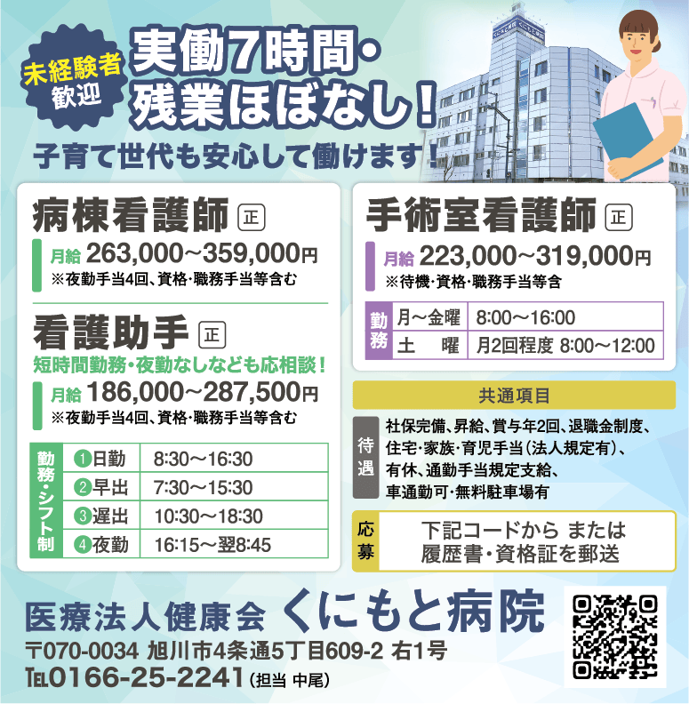 | 職種 | 病棟看護師 正社員 看護助手 正社員 手術室看護師 正社員 |