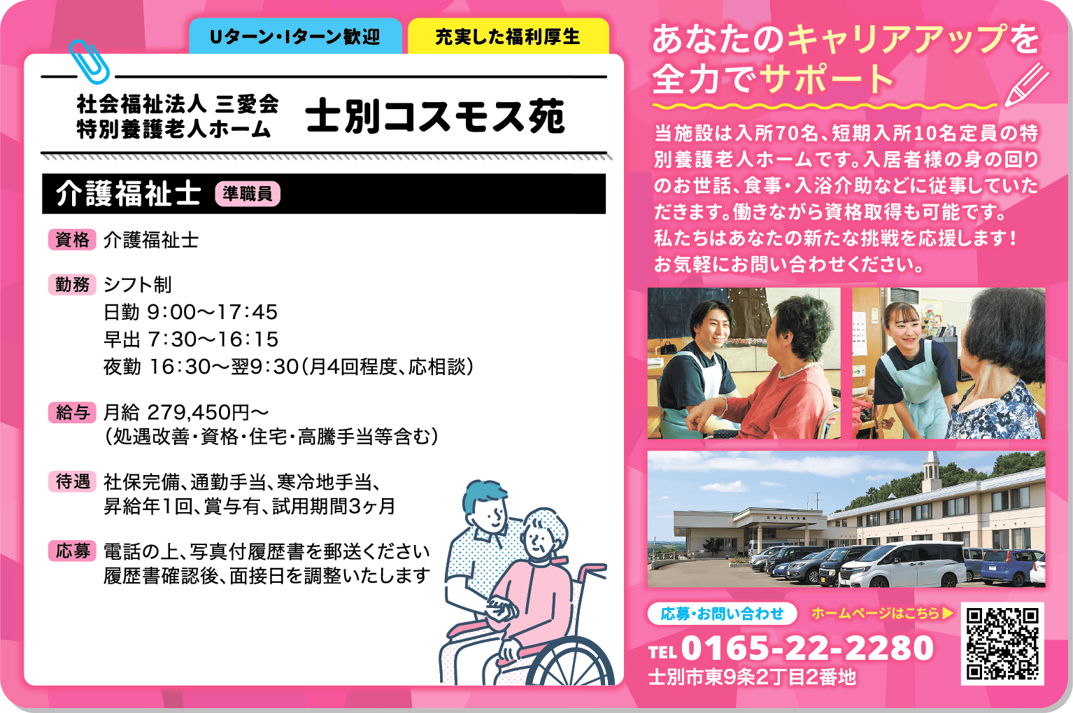 | 企業名 | 社会福祉法人三愛会 特別養護老人ホーム士別コスモス苑 |