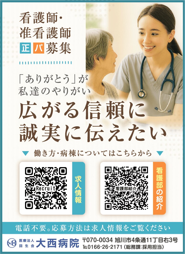 | その他・PR | 「ありがとう」が 私達のやりがい 広がる信頼に 誠実に伝えたい 働き方・病棟についてはこちらから 求人情報 看護部の紹介 |