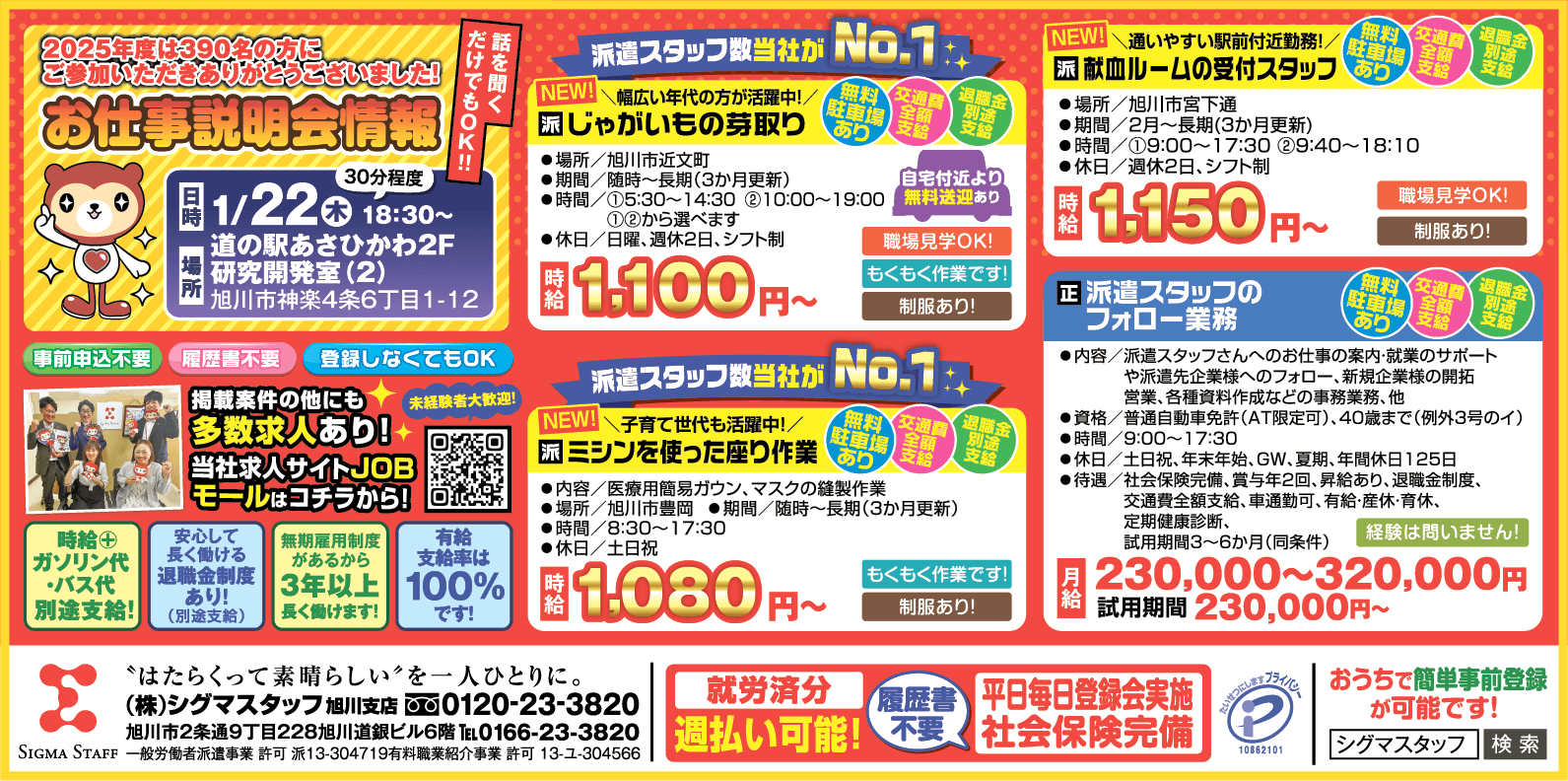 | 企業名 | 株式会社 シグマスタッフ 旭川支店 |