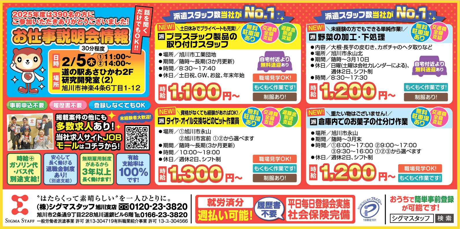 | 企業名 | 株式会社 シグマスタッフ 旭川支店 |
