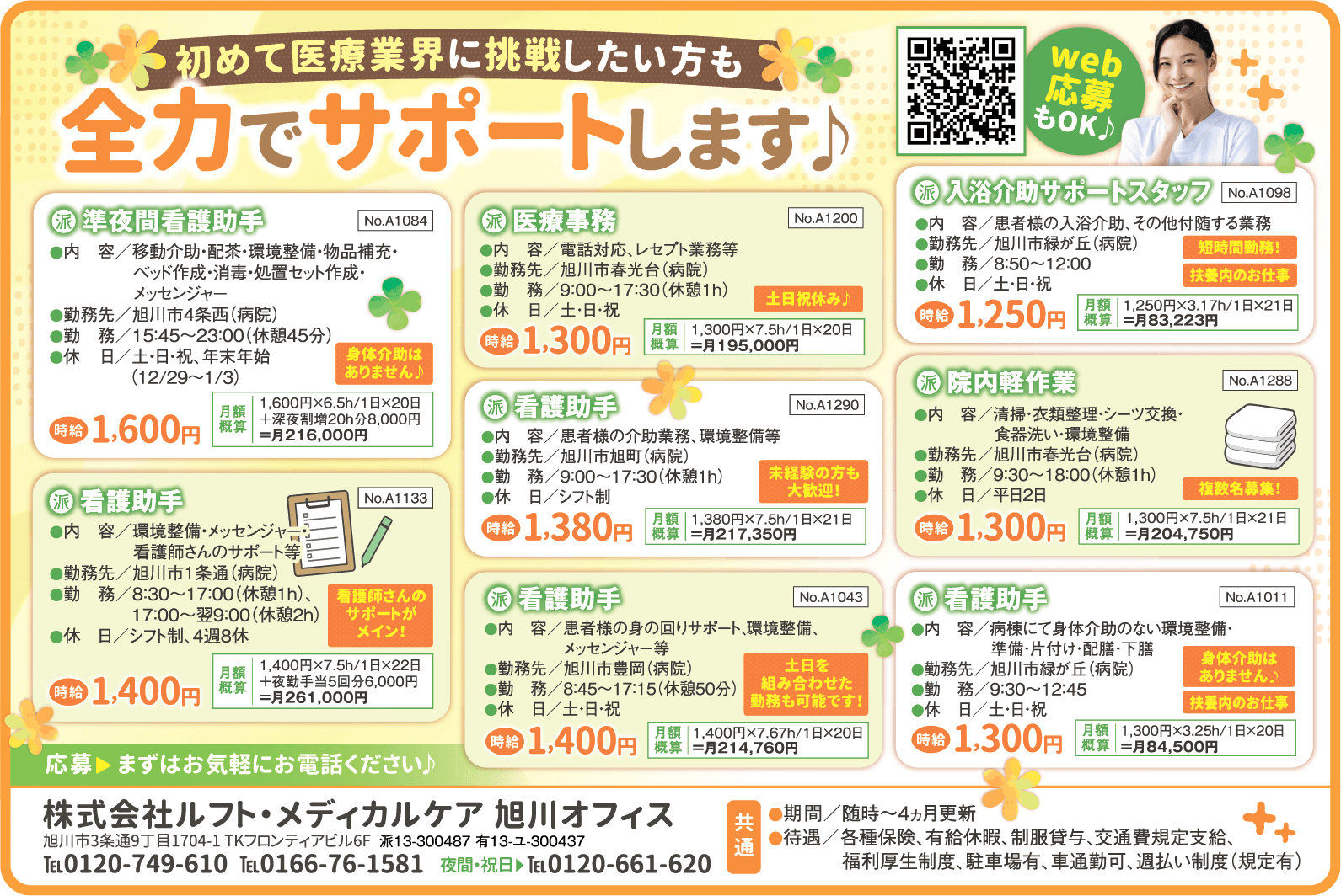 | 応募 | まずはお気軽にお電話ください♪ 夜間・祝日は℡0120-661-620 WEB応募もOK こちらから No.A1043 |