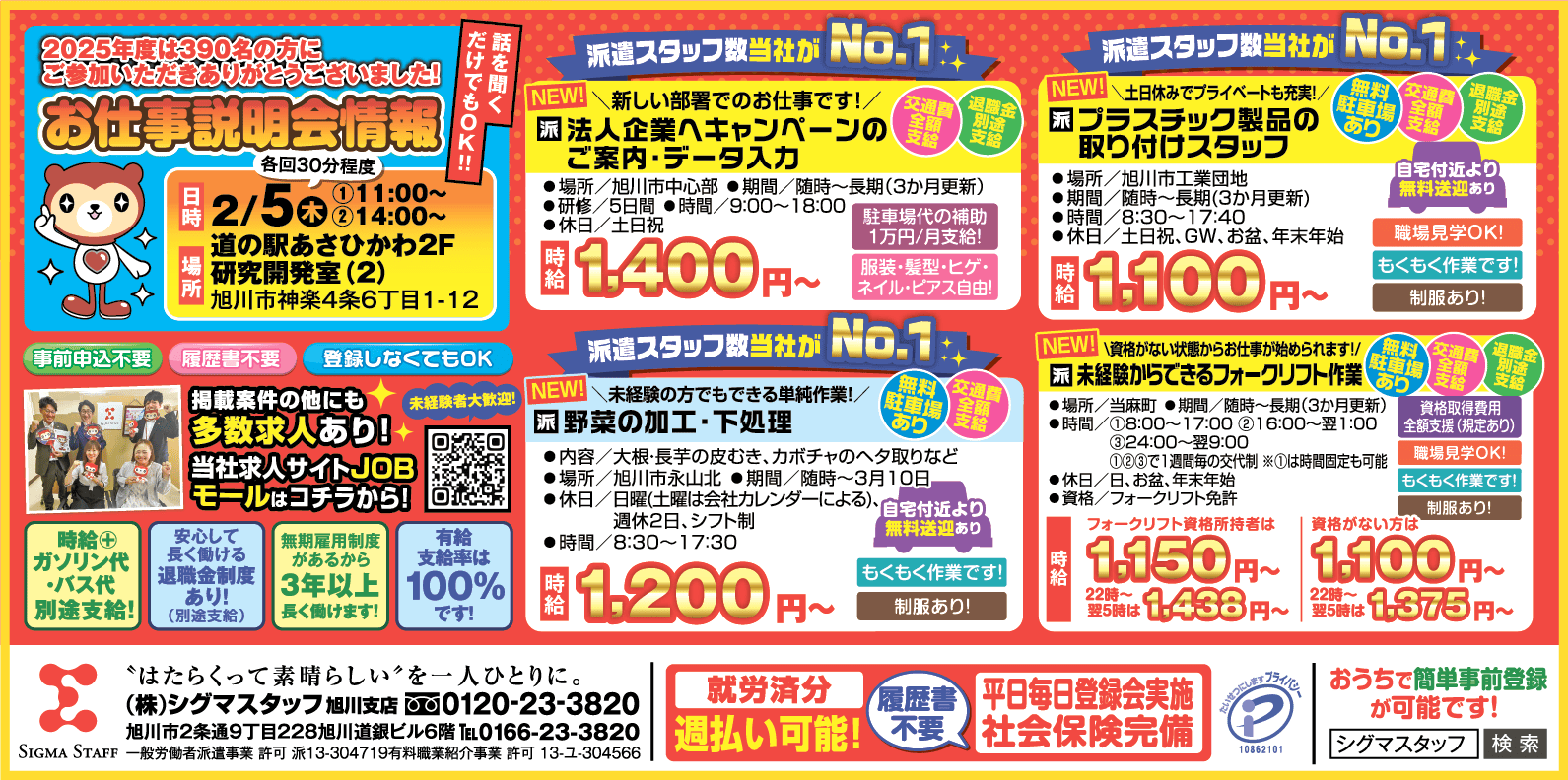 | 企業名 | 株式会社 シグマスタッフ 旭川支店 |
