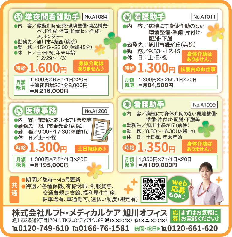 | 応募 | まずはお気軽にお電話ください♪ 夜間・祝日は℡0120-661-620 WEB応募もOK こちらから No.A1084 |
