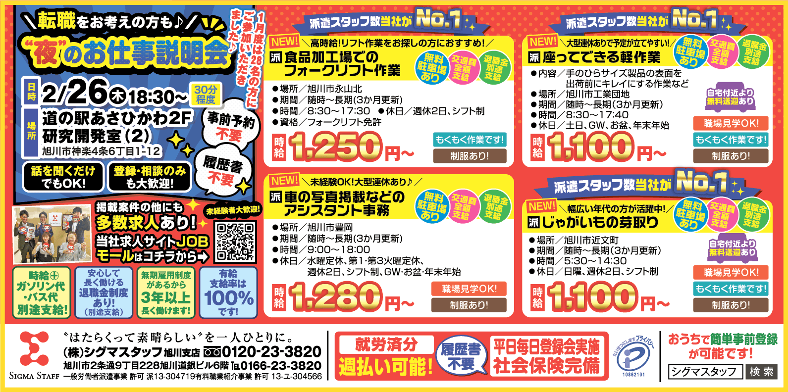 | 企業名 | 株式会社 シグマスタッフ 旭川支店 |