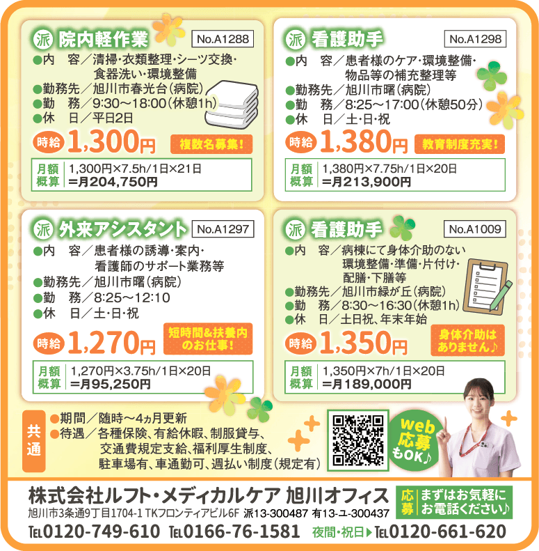 | 応募 | まずはお気軽にお電話ください♪ 夜間・祝日は℡0120-661-620 WEB応募もOK こちらから No.A1298 |