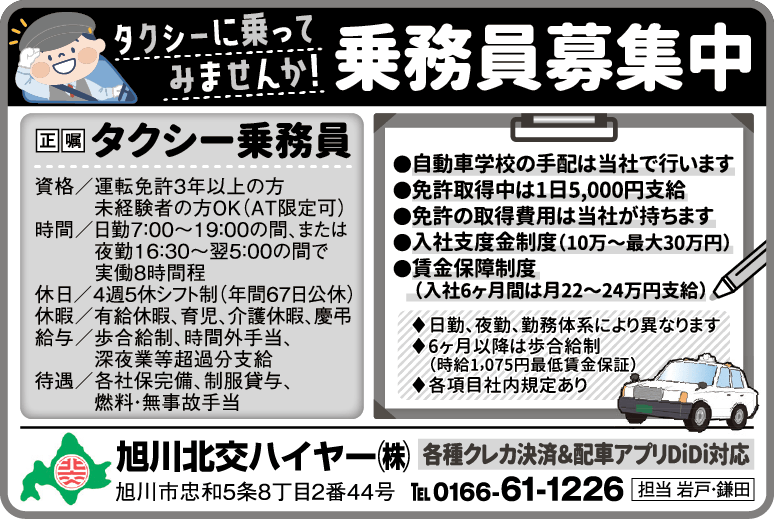 | 企業名 | 旭川北交ハイヤー株式会社 |