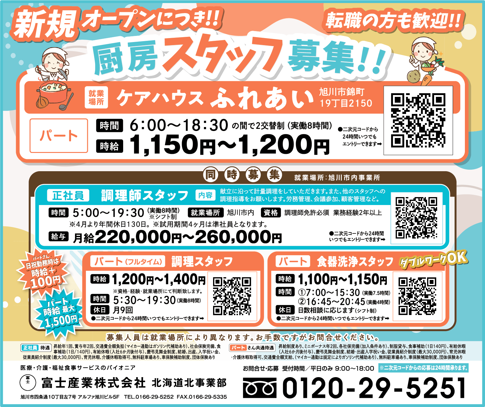 募集人員は就業場所により異なります。お手数ですがお問合せください。 |