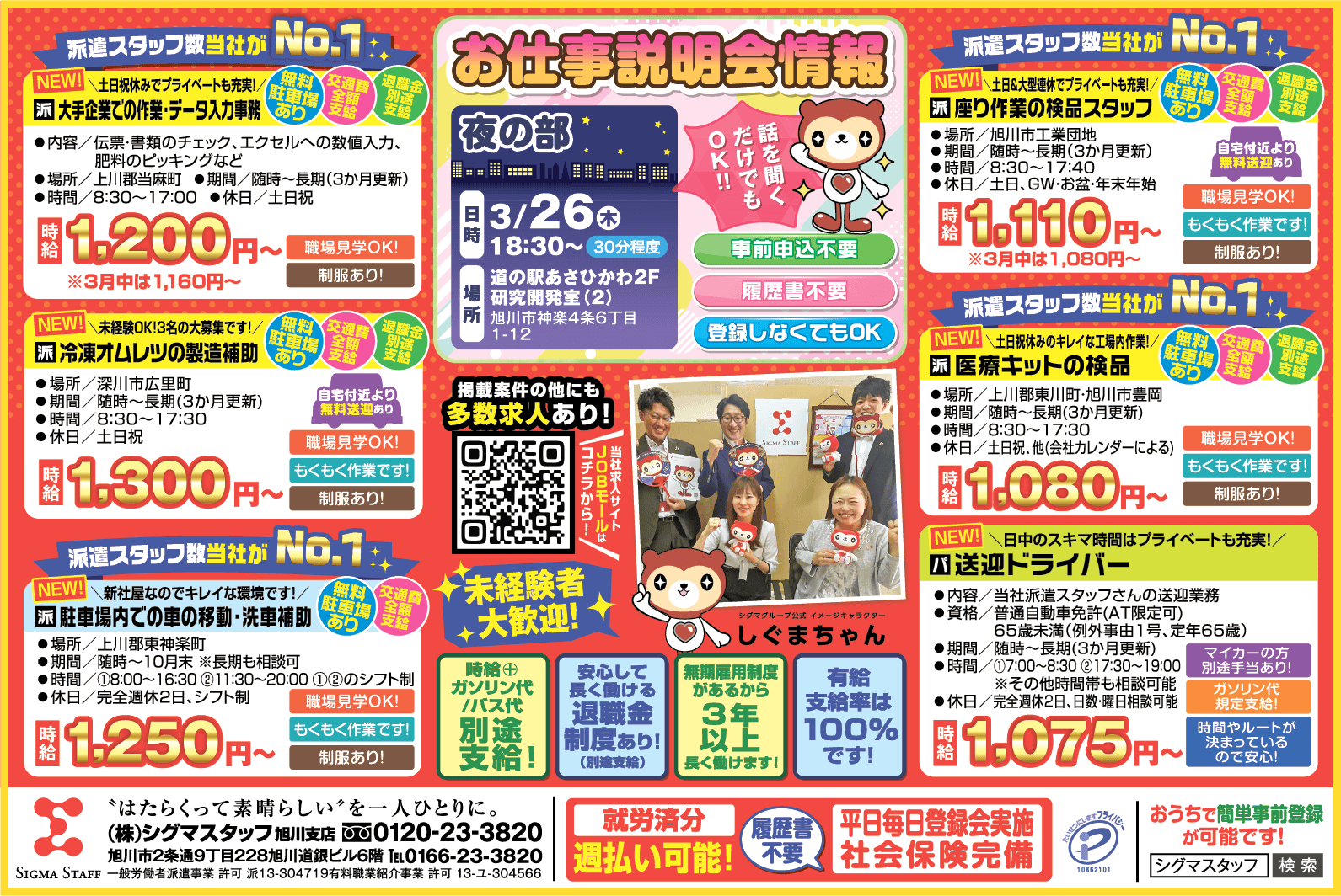 | 企業名 | 株式会社 シグマスタッフ 旭川支店 |