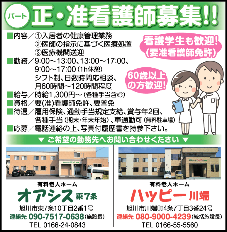 | その他・PR | 看護学生も歓迎!(要准看護師免許) 60歳以上の方歓迎! |