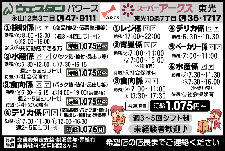 | 内容 | 商品製造・パック詰・値付・品出し・値引き・清掃等 |