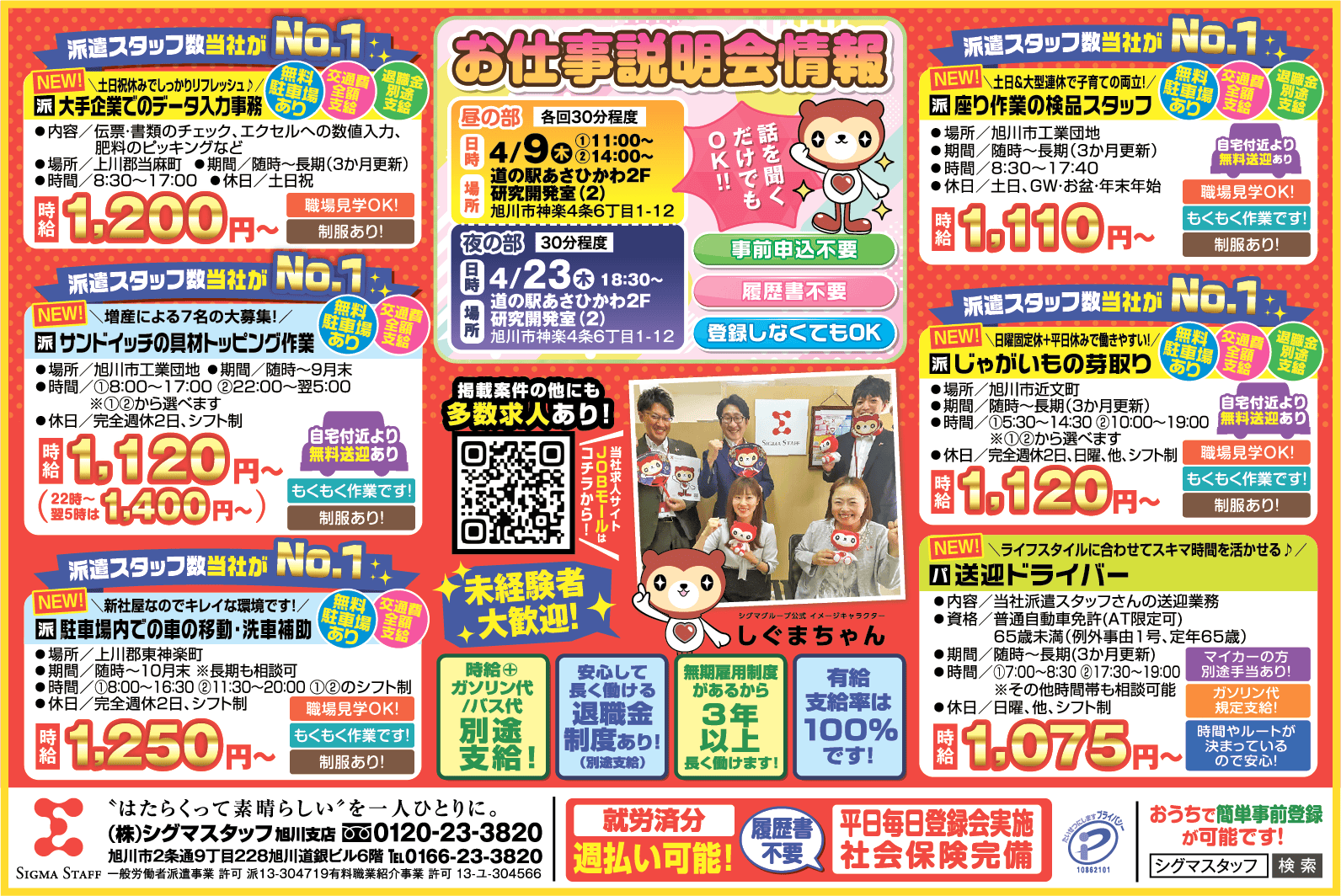 | 企業名 | 株式会社 シグマスタッフ 旭川支店 |
