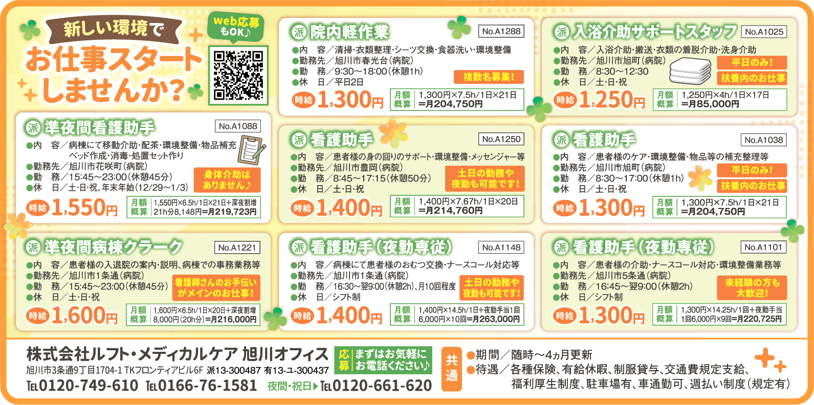 | 応募 | まずはお気軽にお電話ください♪ 夜間・祝日は℡0120-661-620 WEB応募もOK こちらから No.A1148 |