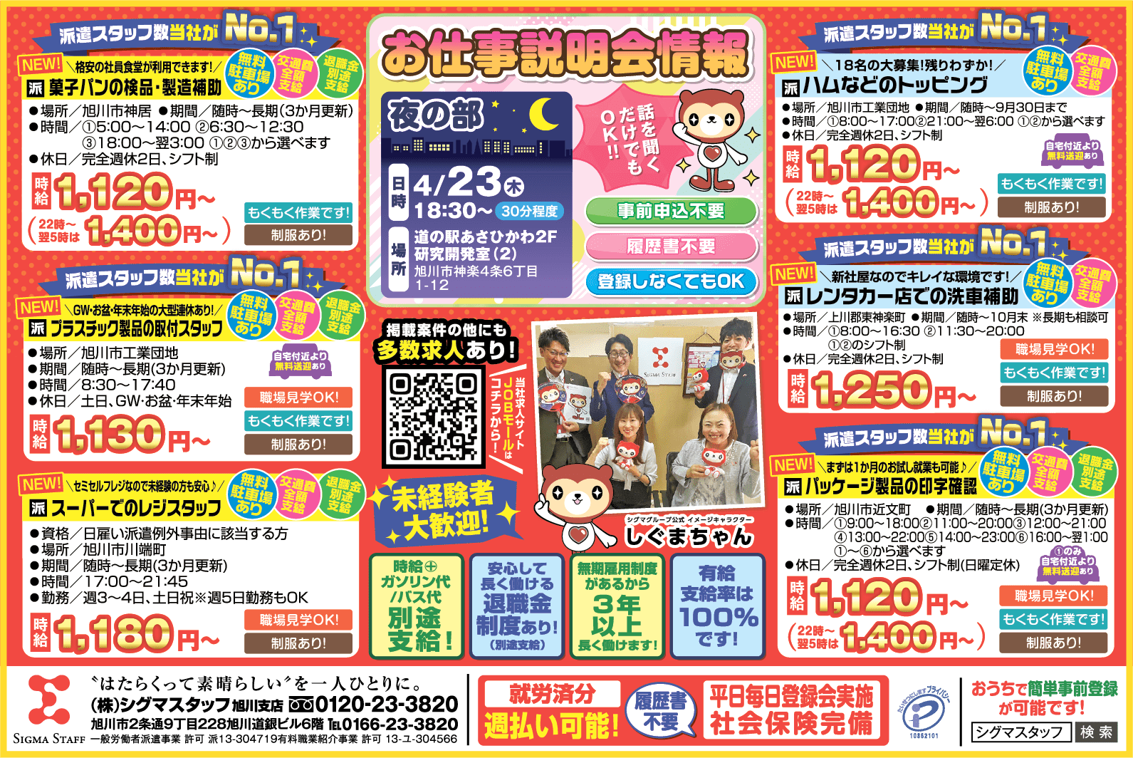 | 企業名 | 株式会社 シグマスタッフ 旭川支店 |