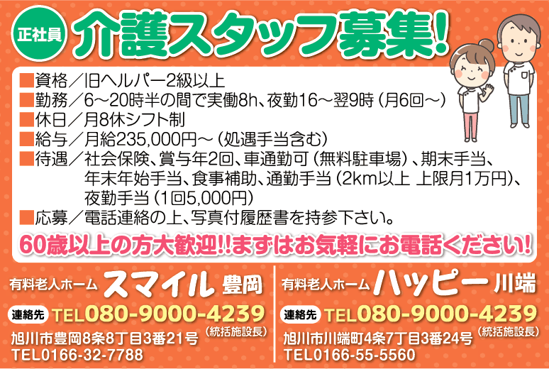 | 場所 | 有料老人ホームハツピー川端 旭川市川端町4条7丁目3番24号 |
