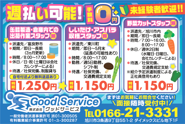 | 職種 | しいたけ・アスパラ収穫スタッフ 派遣 |