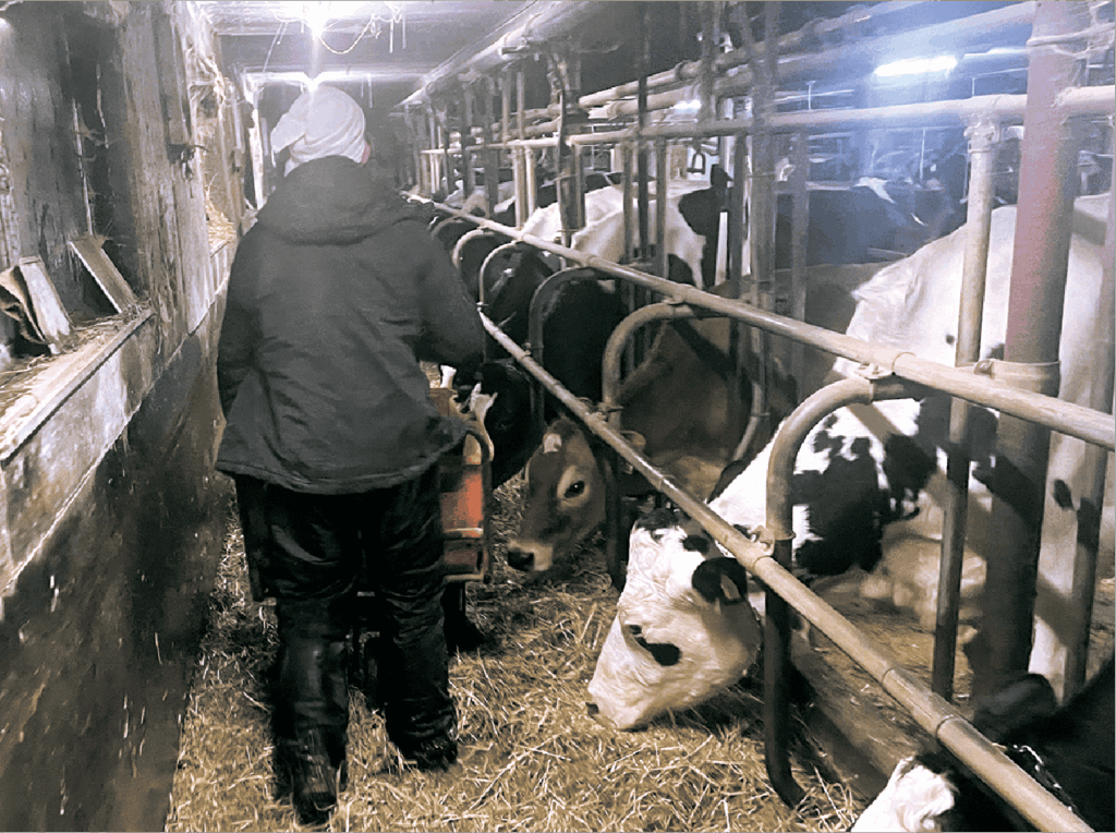 酪農ヘルパーは酪農家と直接雇用関係を結ぶアルバイトやパートと捉えられがちですが、実際は各組織に職員として所属し、それぞれの組織に加入している酪農家の需要に応じて出役し、朝・夕と牛の世話をすることになります。給料は酪農家からではなく、所属する利用組織から支払われることになり手当や福利厚生も利用組織により異なります。現在、北海道には大小さまざまな86の利用組織があり、それぞれ10戸から400戸を超える酪農家が加入しています。さまざまな思いを持つ酪農家の方々と日々接しながら信頼関係を築き、酪農家に感謝されたときの喜びは格別です。